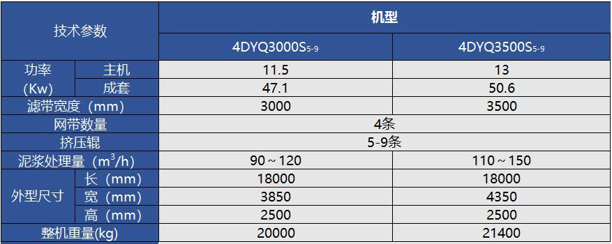 ①采用四条滤带组合成两个独立压榨脱区,形成非常平缓的泥浆固液转变的压榨力,使运行效果即干又快。